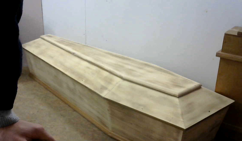 J’ai repeint le cercueil qui y est présenté en lisant des récits d'accidents qui ont eu lieu dans des parcs d’attraction.